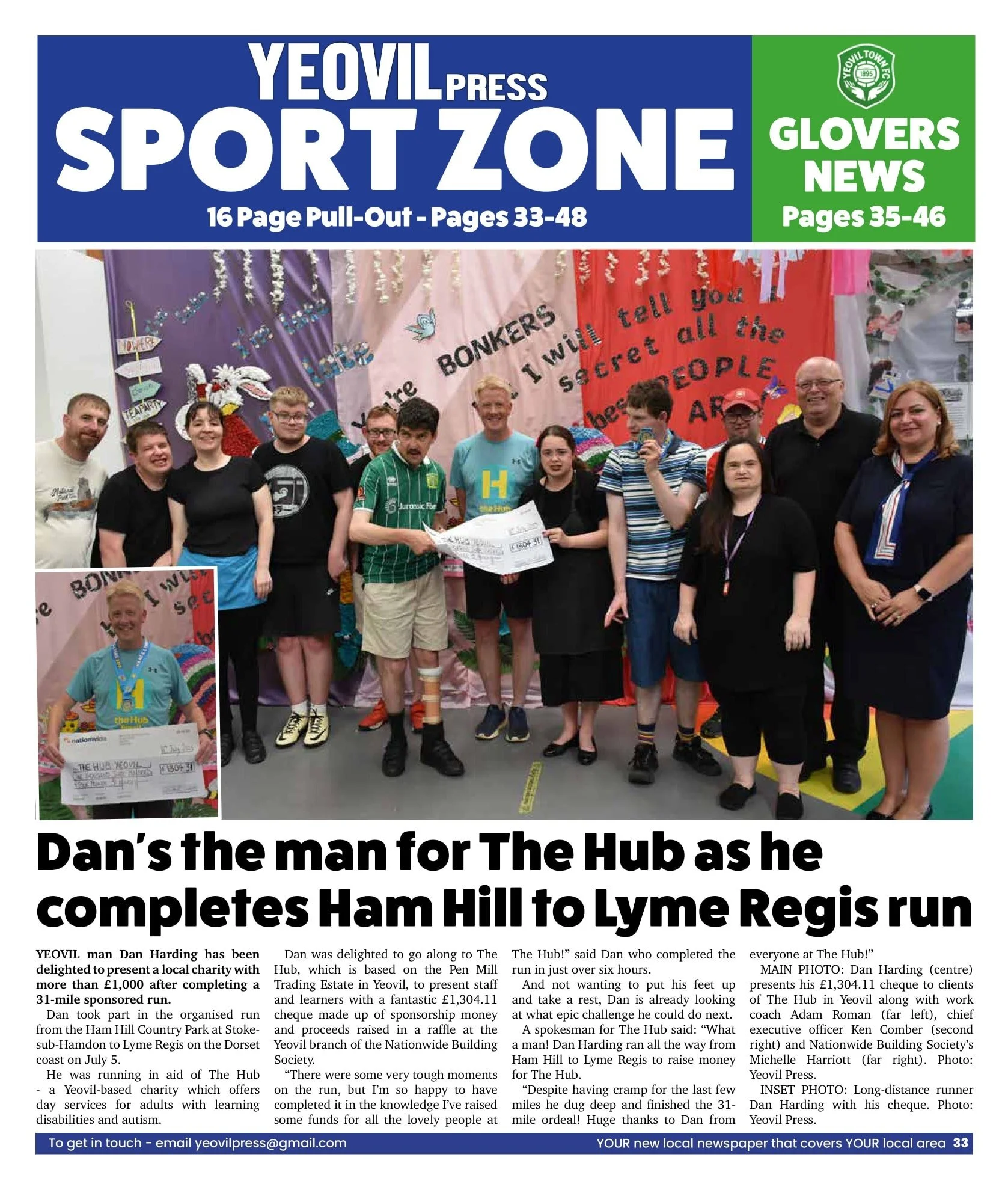 Our friend Dan was back at the Hub last week to present us with a whopping cheque for £1,304.31 after his gruelling 31 mile run from Ham Hill to Lyme Regis. Huge thanks Dan!! A big thank you also to Julie and Michelle of Nationwide for organising a raffle to raise funds. Finally thanks to Steve Sowden for the photos and article in the local press.